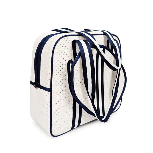 White with Navy and White stripes